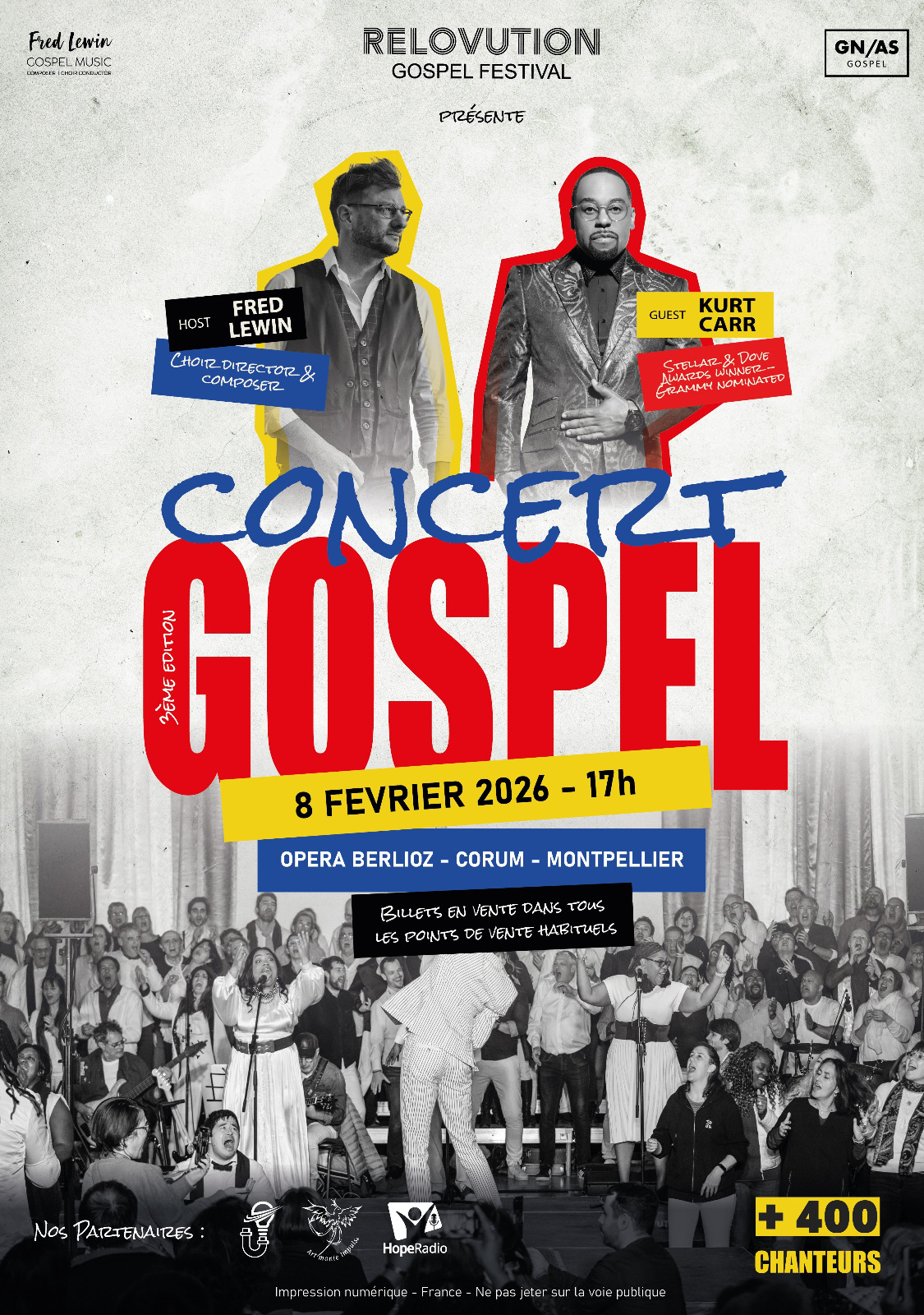 Après deux années couronnées de succès, Fred Lewin et GN/AS GOSPEL sont heureux de vous présenter la 3ᵉ édition du Relovution Gospel Festival, qui se tiendra à Montpellier du 6 au 8 février 2026.